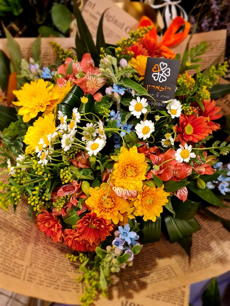 זר פרחים ססגוני בגוונים חמים